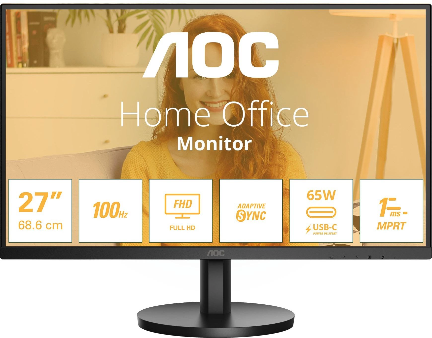 ЖК-монитор AOC Basic-Line 27B3CA2 27" IPS LED 1ms 16:9 HDMI M/M матовая 250cd 178гр/178гр 1920x1080 100Hz DP FHD USB 3.36кг черный