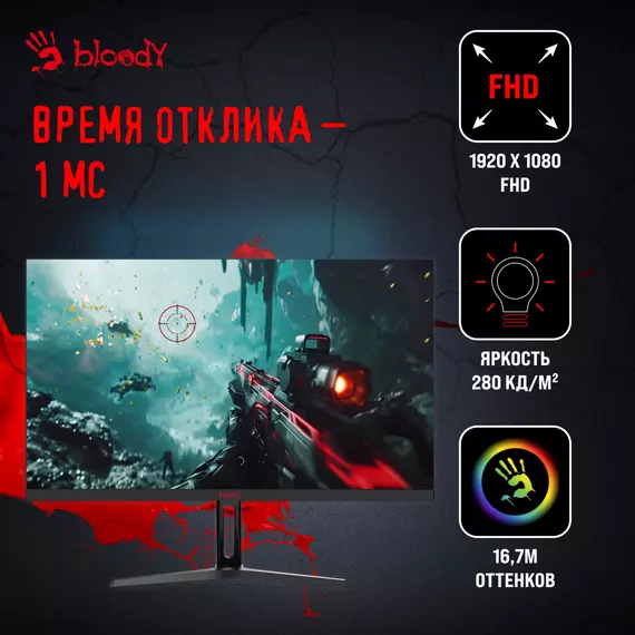Монитор Bloody MN240F 23.8" IPS LED 1ms 16:9 HDMI M/M матовая 280cd 178гр/178гр 1920x1080 180Hz G-Sync DP FHD 2.9кг черный