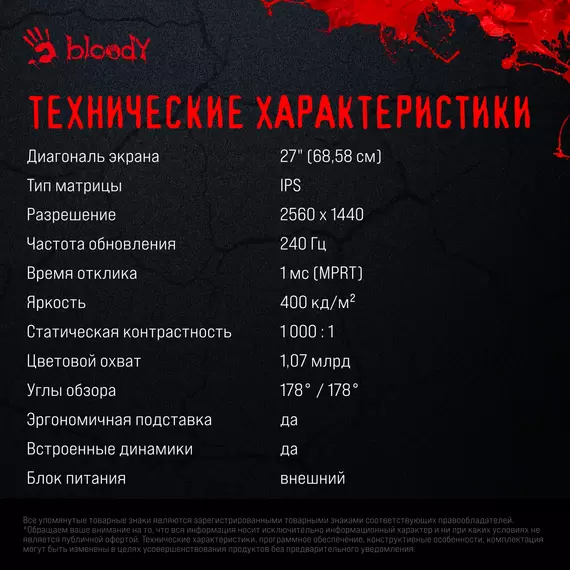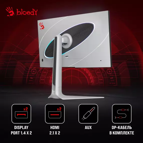 Монитор Bloody MN272Q 27" IPS LED 1ms 16:9 HDMI M/M матовая HAS 400cd 178гр/178гр 2560x1440 240Hz G-Sync FreeSync DP 2K 6.55кг светло-серый
