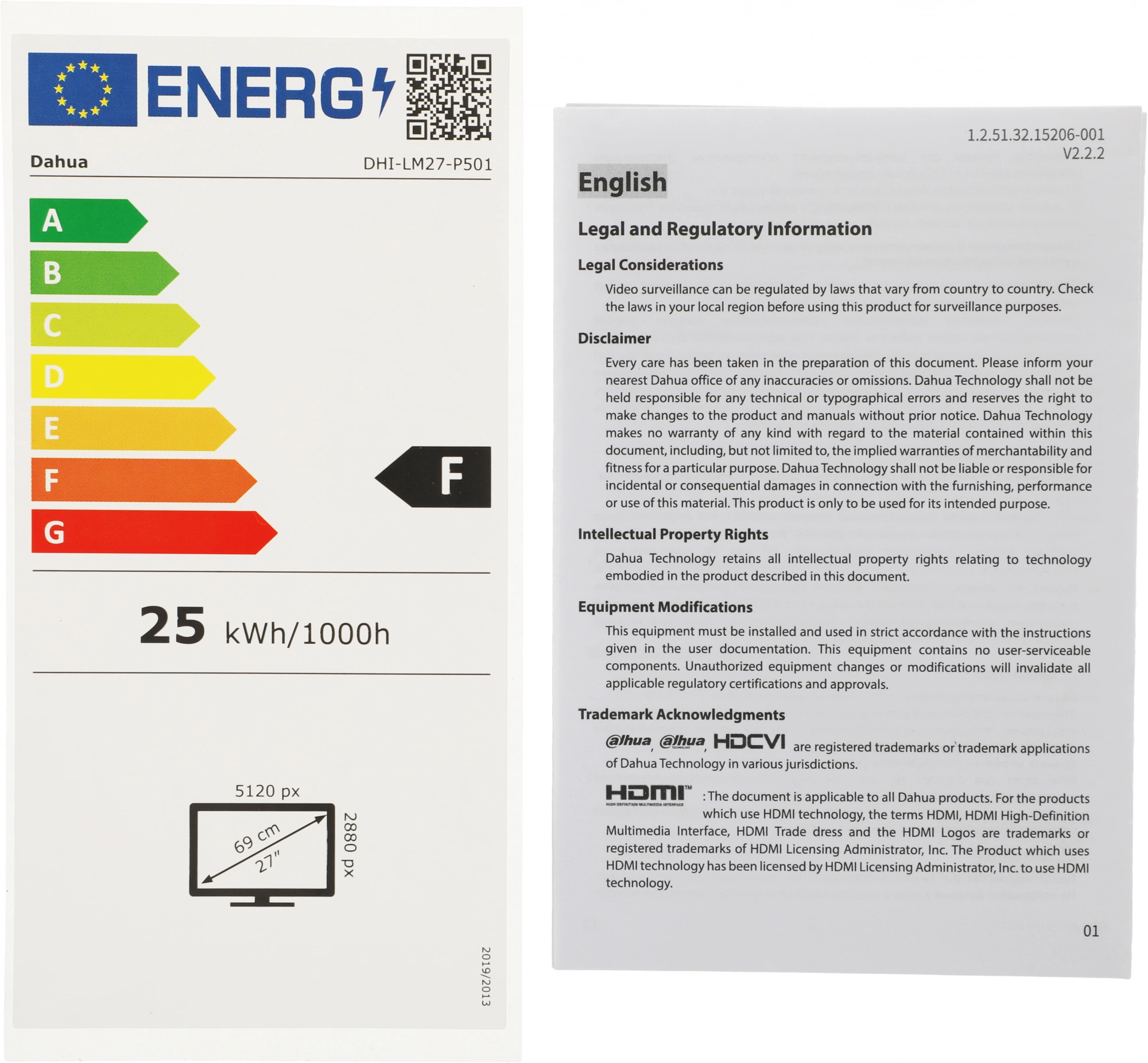 Монитор Dahua DHI-LM27-P501 27" серебристый IPS LED 5ms 16:9 HDMI матовая 2000:1 400cd 178гр/178гр 5120x2880 60Hz DP 5K USB 5.78кг