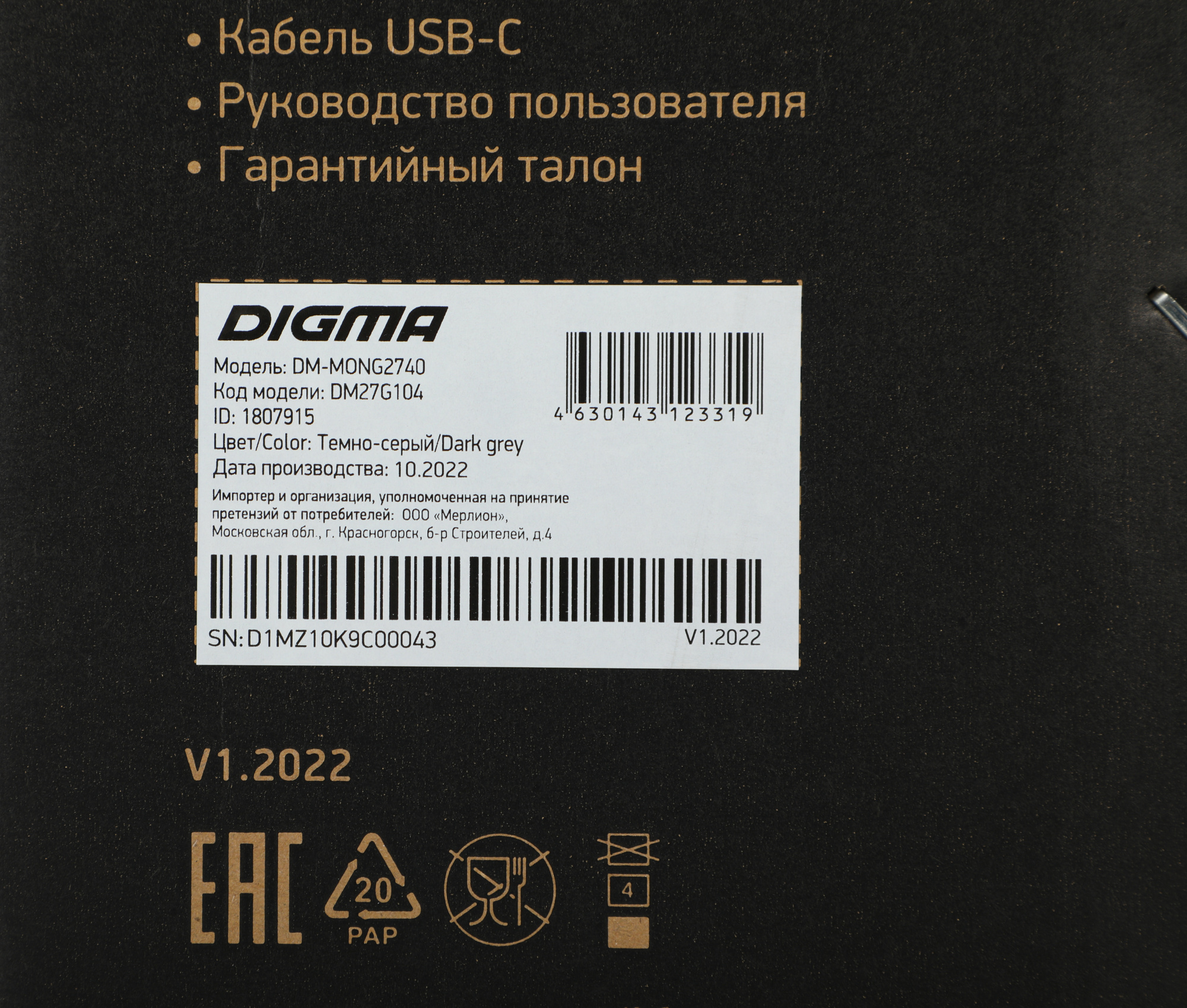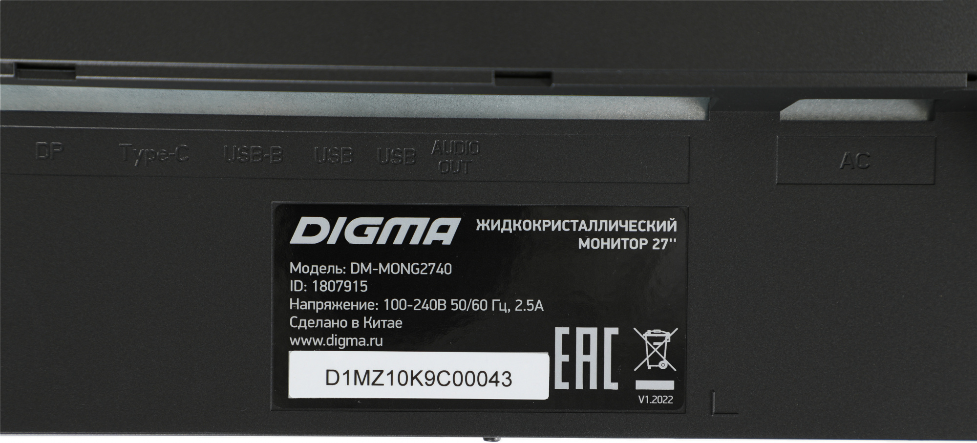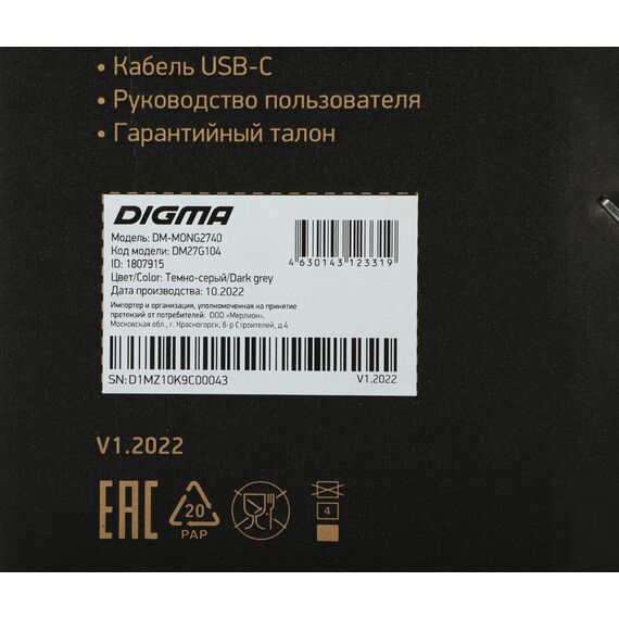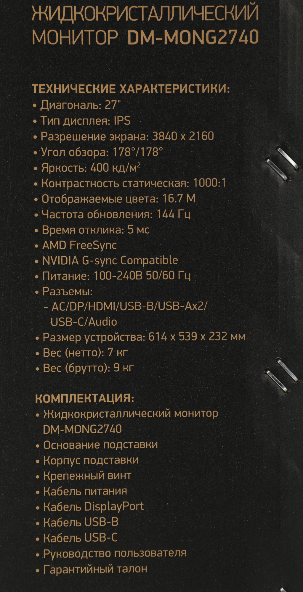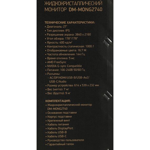 Монитор Digma DM-MONG2740 27" Gaming темно-серый IPS LED 5ms 16:9 HDMI матовая HAS Piv 400cd 178гр/178гр 3840x2160 144Hz G-Sync FreeSync DP 4K USB 7кг