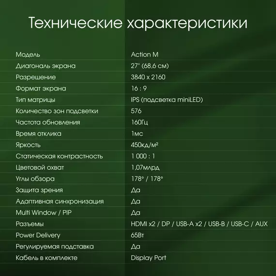| Комплектация | кабель DP, инструкция пользователя, гарантийный талон |