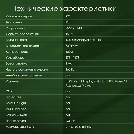 Монитор Digma Pro Art L 27" IPS LED 2ms 16:9 HDMI M/M матовая 300cd 178гр/178гр 2560x1440 165Hz G-Sync FreeSync DP 2K USB 5.7кг синий [DM27SP03]