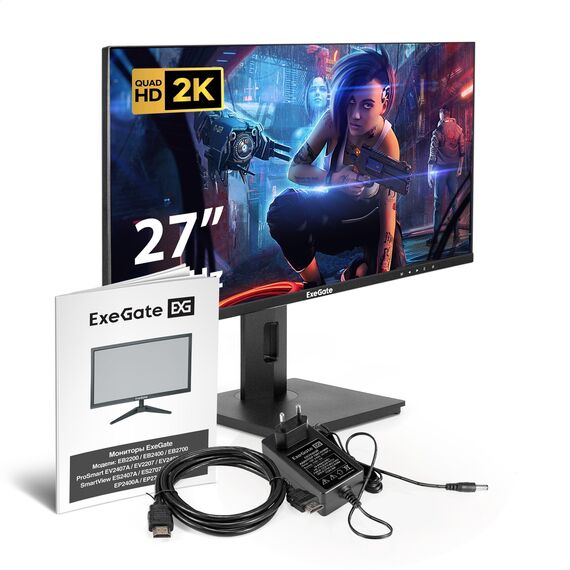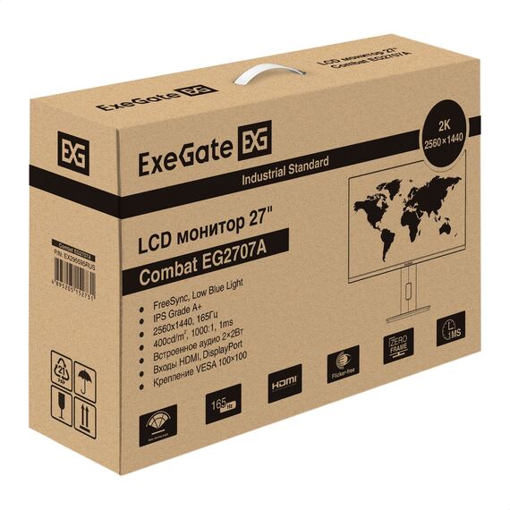 Монитор игровой Exegate Combat EG2707A 27" IPS LED, 2K, 2560x1440@165Гц, 16:9, 400cd/m2, 1000:1, 178°/178°, 1ms, Speakers, 2xHDMI2.0, DisplayPort, USB, аудио-выход [EX295595RUS]