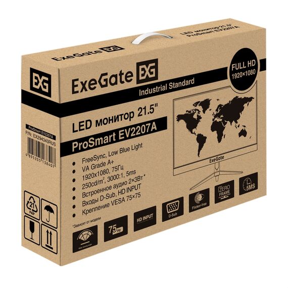 Монитор безрамочный Exegate ProSmart EV2207A 21.5" VA LED, FHD, 1920x1080@75Гц, 16:9, 280cd/m2, 3000:1, 178°/178°, 5ms, Speakers, D-Sub, HDMI2.0 [EX294343RUS]