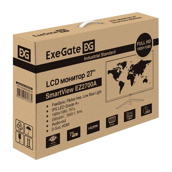 Монитор безрамочный Exegate SmartView EZ2700A 27" IPS LED, FHD, 1920x1080@75Гц, 16:9, 250cd/m2, 1000:1, 178°/178°, 5ms, D-Sub, HDMI1.4, Audio-out [EX296283RUS]