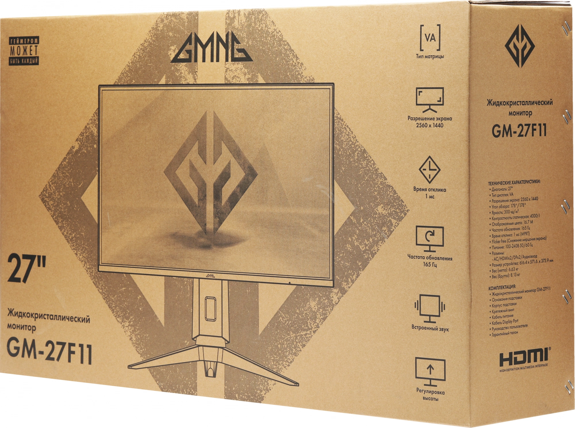 Монитор GMNG Gaming GM-27F11 27" LED, 2560x1440, HDMI,G-Sync, DP, 6.63кг, черный [GM27VG01]