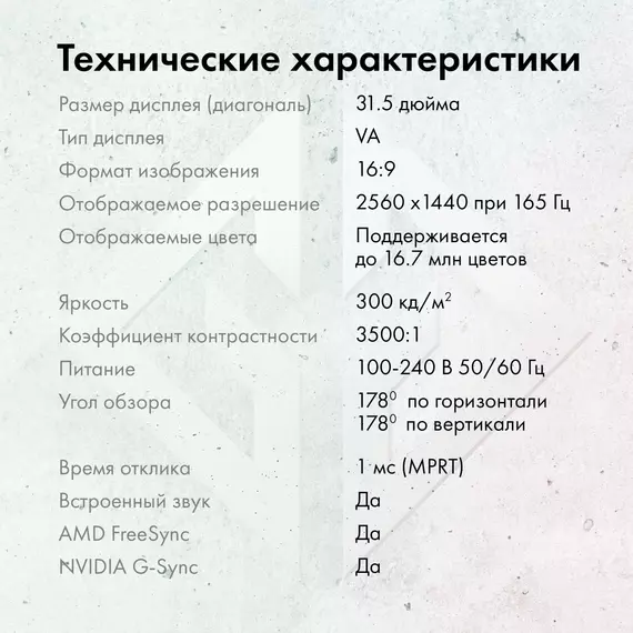 ЖК-монитор GMNG Gaming GM-32F11 31.5" VA LED 1ms 16:9 HDMI M/M матовая HAS Piv 3500:1 300cd 178гр/178гр 2560x1440 165Hz G-Sync DP 2K 8.13кг черный [GM32VG01]