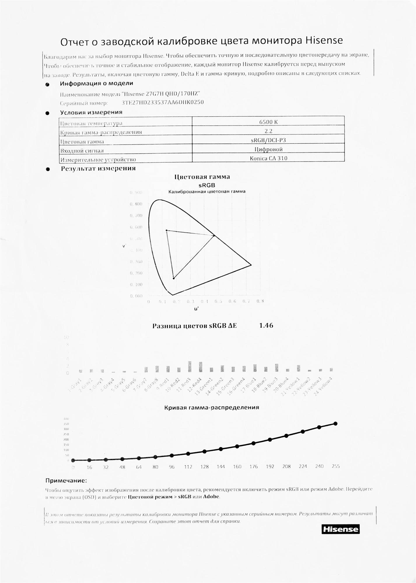 Описание Hisense 27G7H