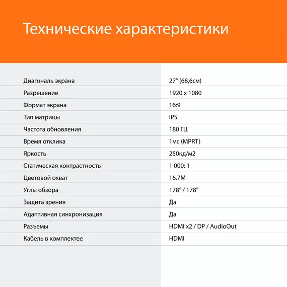 | Диагональ экрана | 27" (68.6см) |