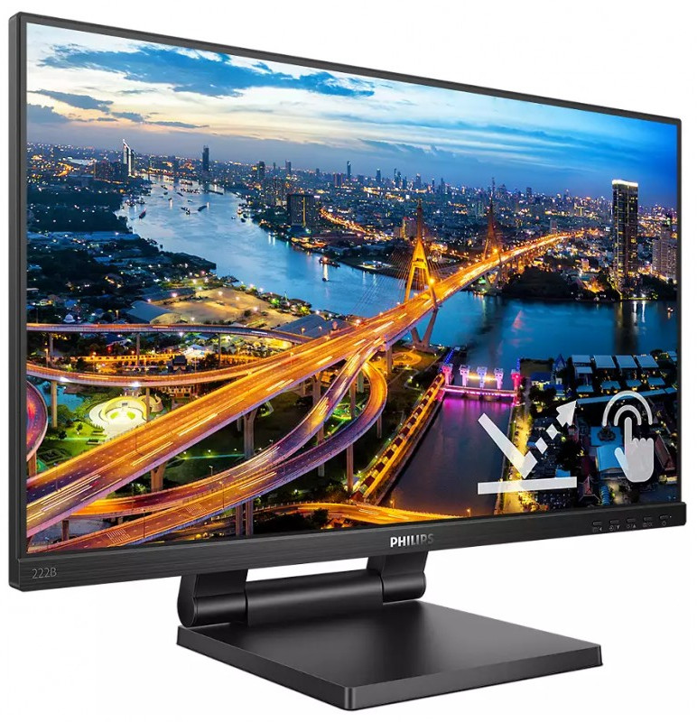 ЖК-монитор PHILIPS 222B1TC/00 Black 21.5" IPS, Multi-Touch, 1920x1080, 75Hz, 4 ms, 178°/178°, 250 cd/m, 50M:1, +HDMI 1.4, +DisplayPort 1.2, +4xUSB 3.2, +MM, +регулировка по высоте