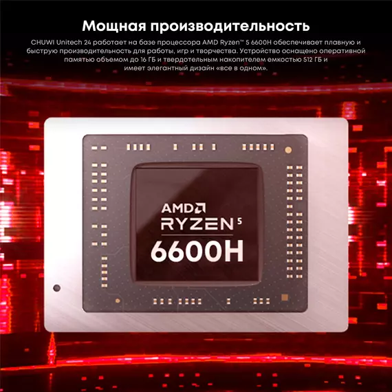 Моноблок CHUWI Unitech 24 23.8" Full HD Ryzen 5 6600H (3.3) 16Gb SSD512Gb 660M Windows 11 Pro GbitEth WiFi BT 48W клавиатура мышь Cam белый 1920x1080