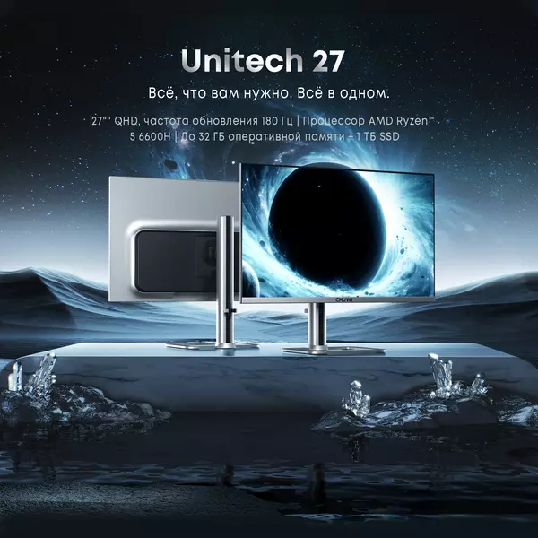 Моноблок CHUWI Unitech 27 27" 2K Ryzen 5 6600H (3.3) 32Gb SSD1Tb 660M Windows 11 Pro GbitEth WiFi BT 48W клавиатура мышь Cam серебристый черный 2560x1440