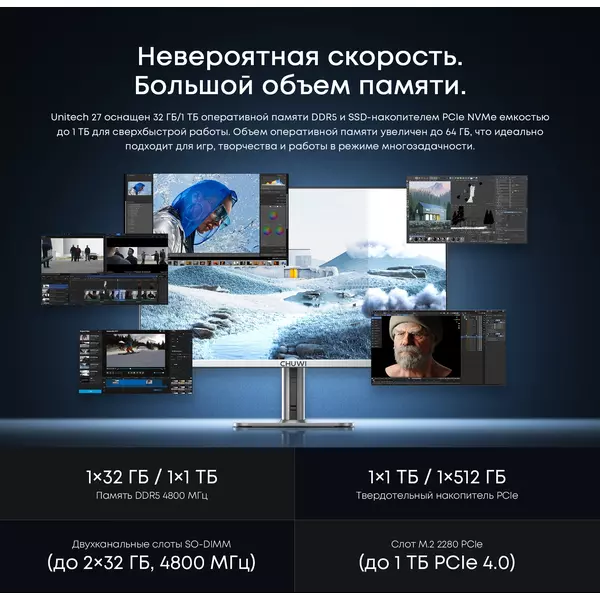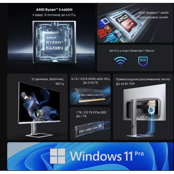 Моноблок CHUWI Unitech 27 27" 2K Ryzen 5 6600H (3.3) 16Gb SSD512Gb 660M Windows 11 Pro GbitEth WiFi BT 48W клавиатура мышь Cam серебристый черный 2560x1440