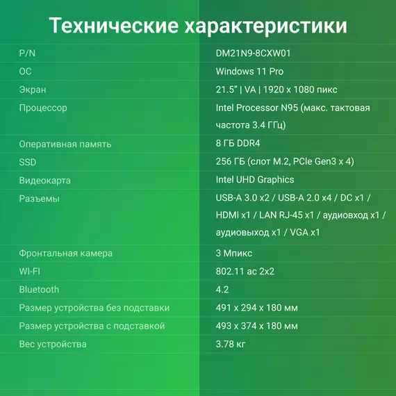 Моноблок Digma Action 21.5" Full HD N95 (1.7) 8Gb SSD256Gb UHDG 600 CR Windows 11 Professional GbitEth WiFi BT 36W клавиатура мышь Cam черный [DM21N9-8CXW01]