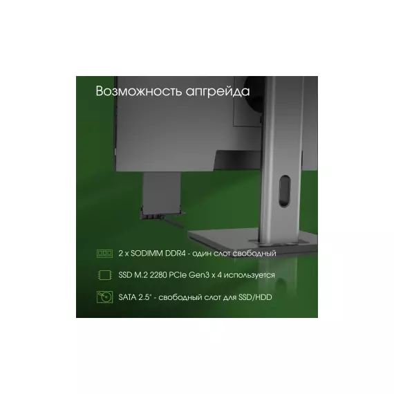 2xSO-DIMM DDR4; SSD M.2 2280 PCIe Gen3 x4; SSD/HDD SATA 2.5”
