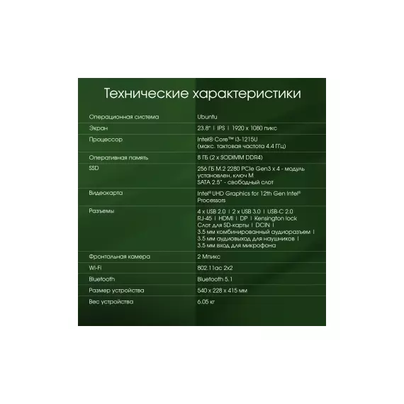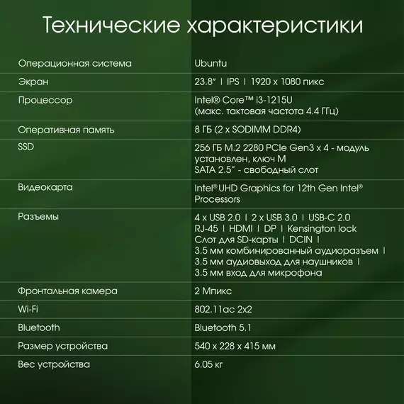 | Процессор | Intel Core i3 1215U 1.2ГГц |