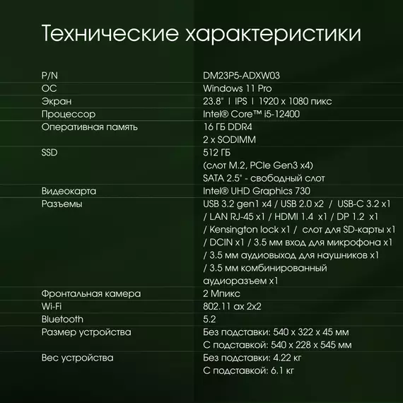 | Процессор | Intel Core i5 12400 2.5ГГц |