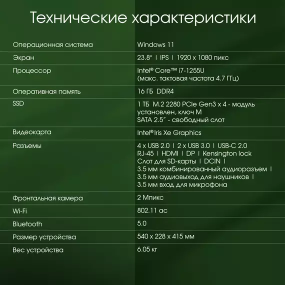 | Комплектация | Моноблок, адаптер питания, клавиатура, мышь, гарантия |