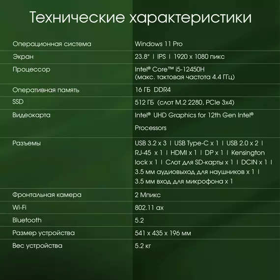 Моноблок Digma Pro Vision 23.8" Full HD i5 12450H (2) 16Gb SSD512Gb UHDG CR Windows 11 Pro Eth WiFi BT 90W клавиатура мышь Cam черный 1920x1080 [DM23P5-ADXW01]