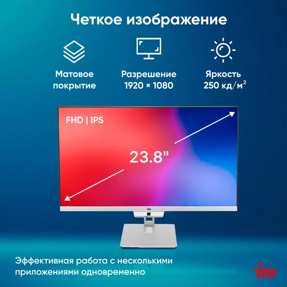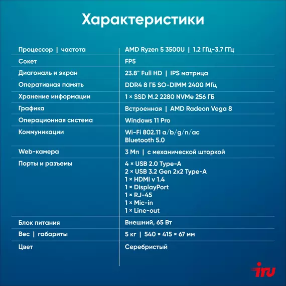 Моноблок iRU Planio 235 23.8" Full HD Ryzen 5 3500U (2.1) 8Gb SSD256Gb Vega 8 Windows 11 Pro 64 GbitEth WiFi BT 120W Cam серебристый 1920x1080 [2105029]