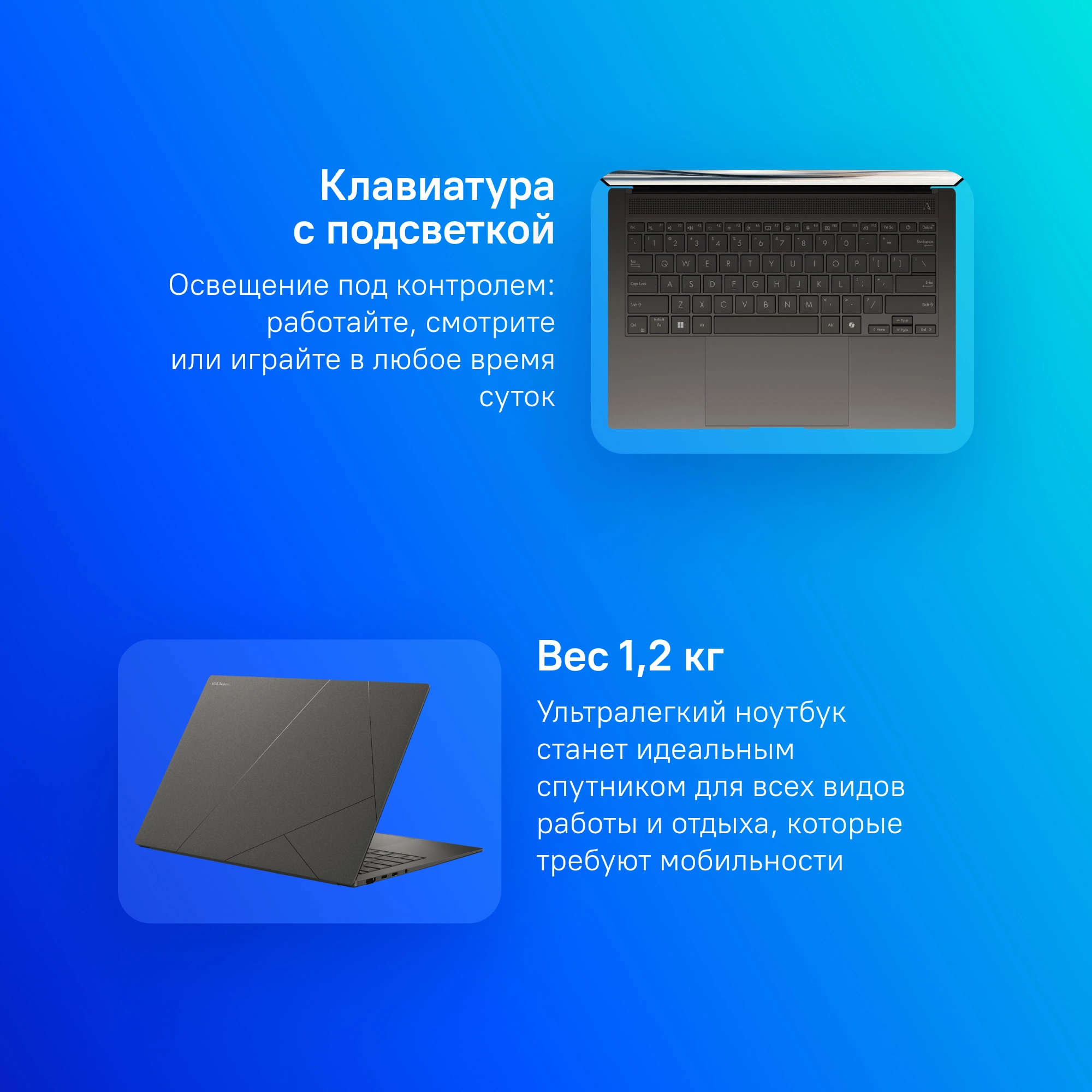 Ноутбук Asus Zenbook S 14 OLED UX5406SA-PV055W Core Ultra 7 258V 32Gb SSD1Tb Intel Arc 14" OLED 3K (2880x1800) Windows 11 Home grey WiFi BT Cam Bag [90NB14F1-M002C0]