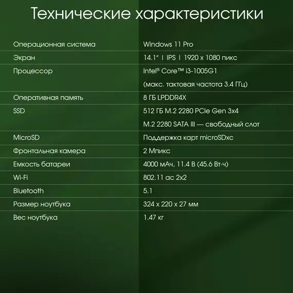 | Процессор | Intel Core i3 1005G1 1.2ГГц |