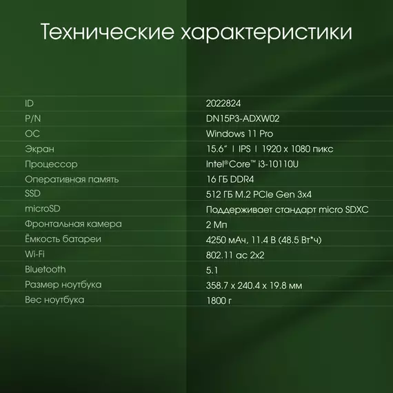| Процессор | Intel Core i3 10110U 2.1ГГц |