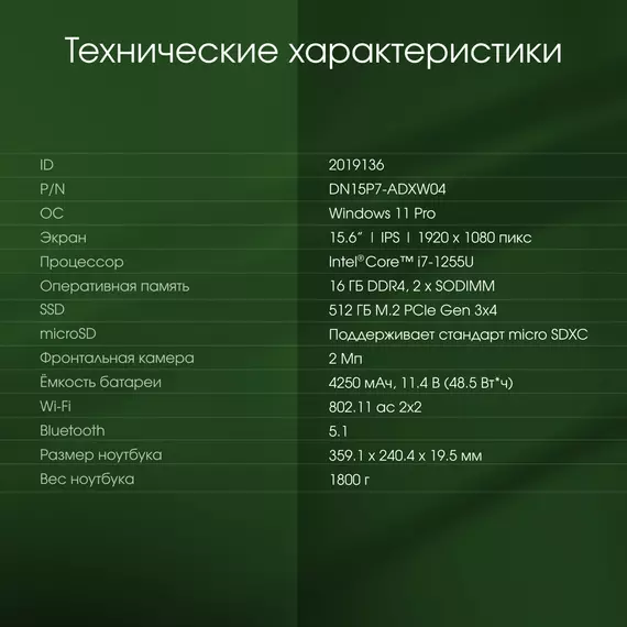 | Процессор | Intel Core i7 1255U 1.7ГГц |