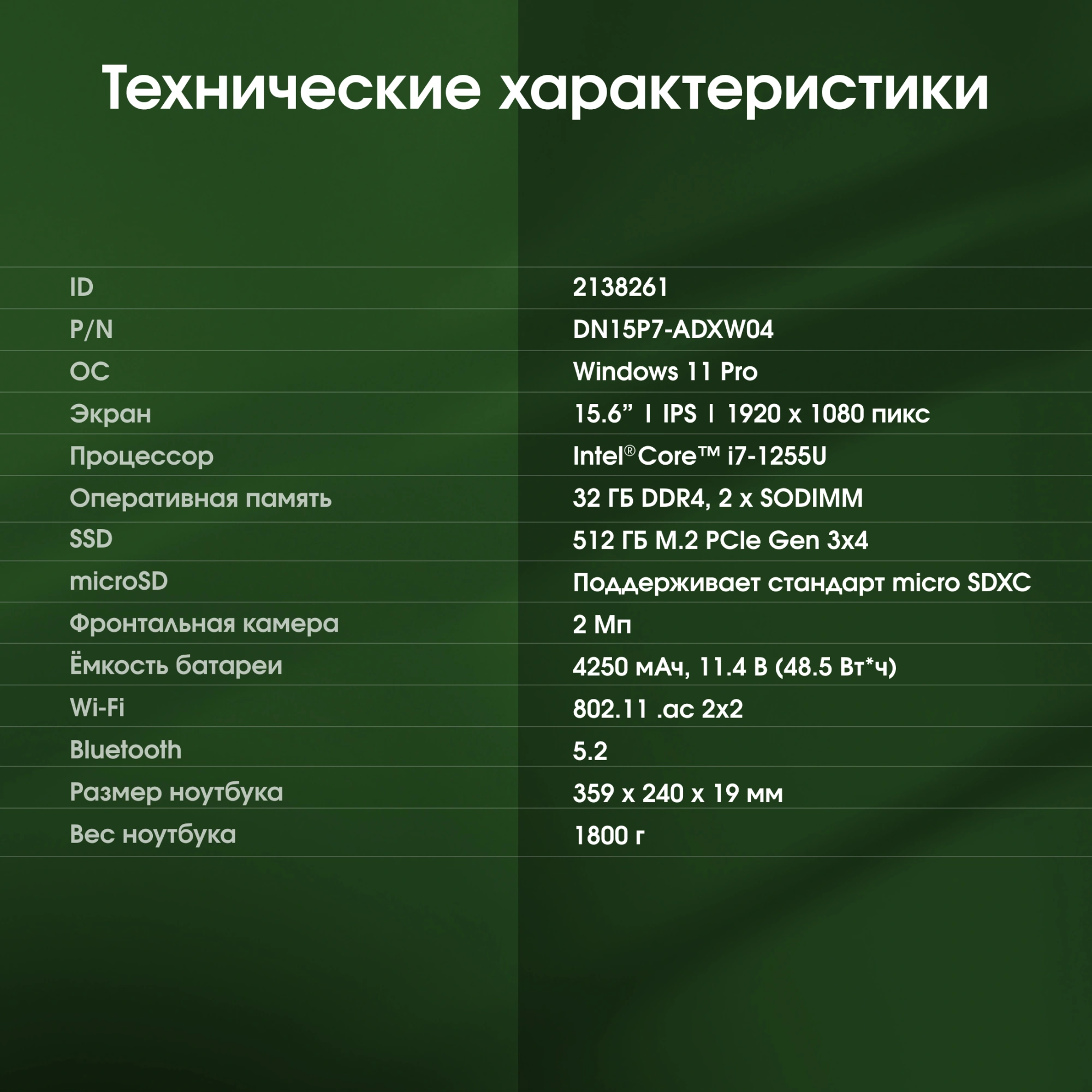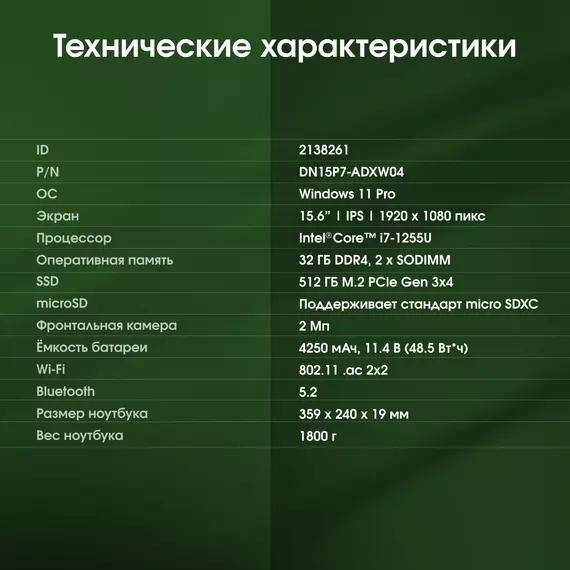 | Операционная система ноутбука | Windows 11 Pro |