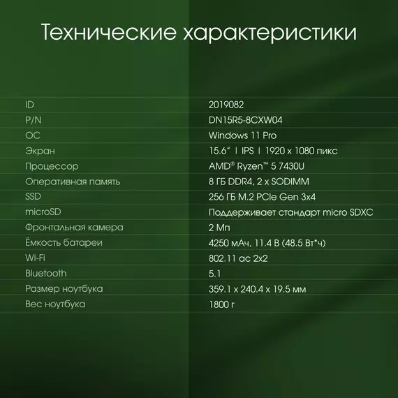 | Процессор | AMD Ryzen 5 7430U 2.3ГГц |