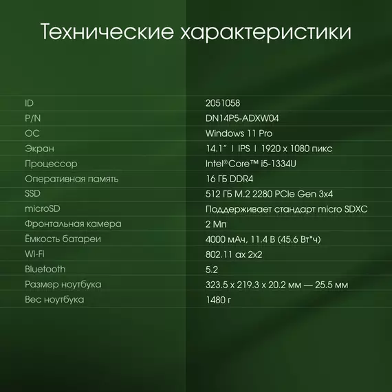 | Процессор | Intel Core i5 1334U 1.3ГГц |
