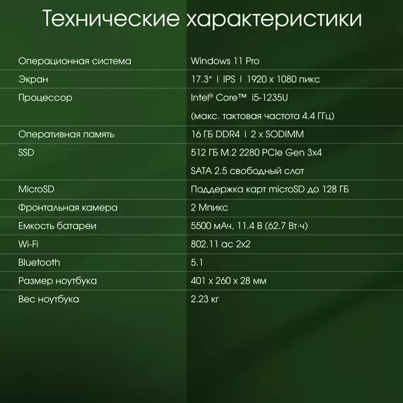 | Процессор | Intel Core i5 1235U 1.3ГГц |