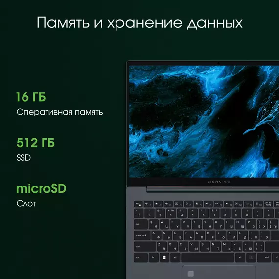 | Общий объем хранилища | SSD 512Gb |