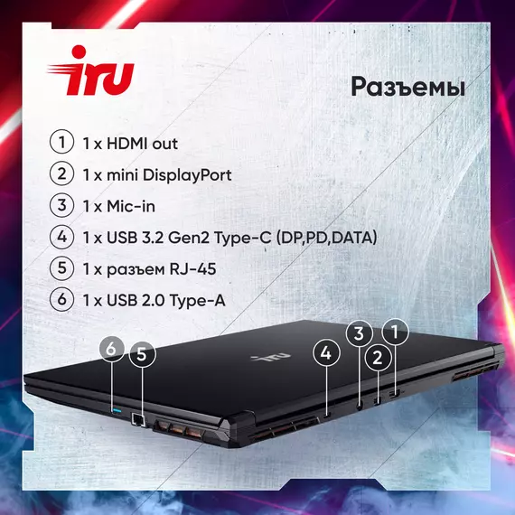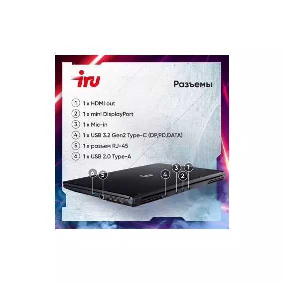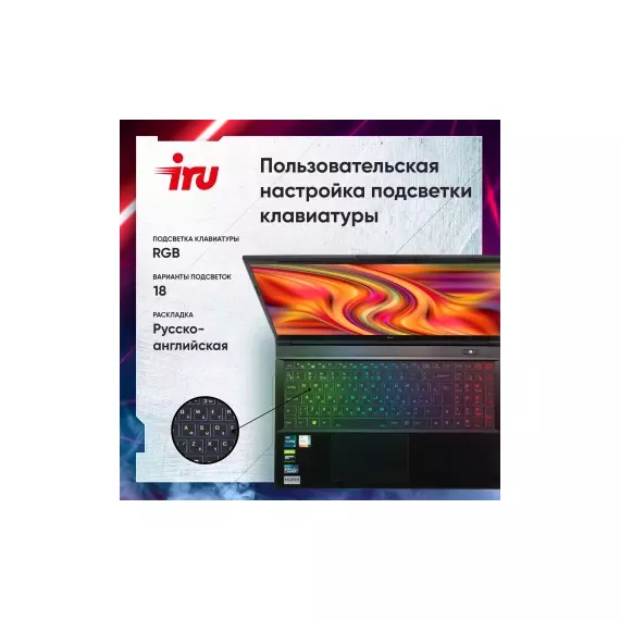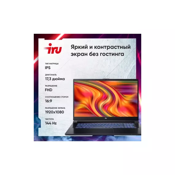 Ноутбук iRU Калибр 17ALC Core i5 12500H 16Gb SSD512Gb NVIDIA GeForce RTX 3060 6Gb 17.3" IPS FHD (1920x1080) без ОС black WiFi BT Cam 3465mAh [1911325]