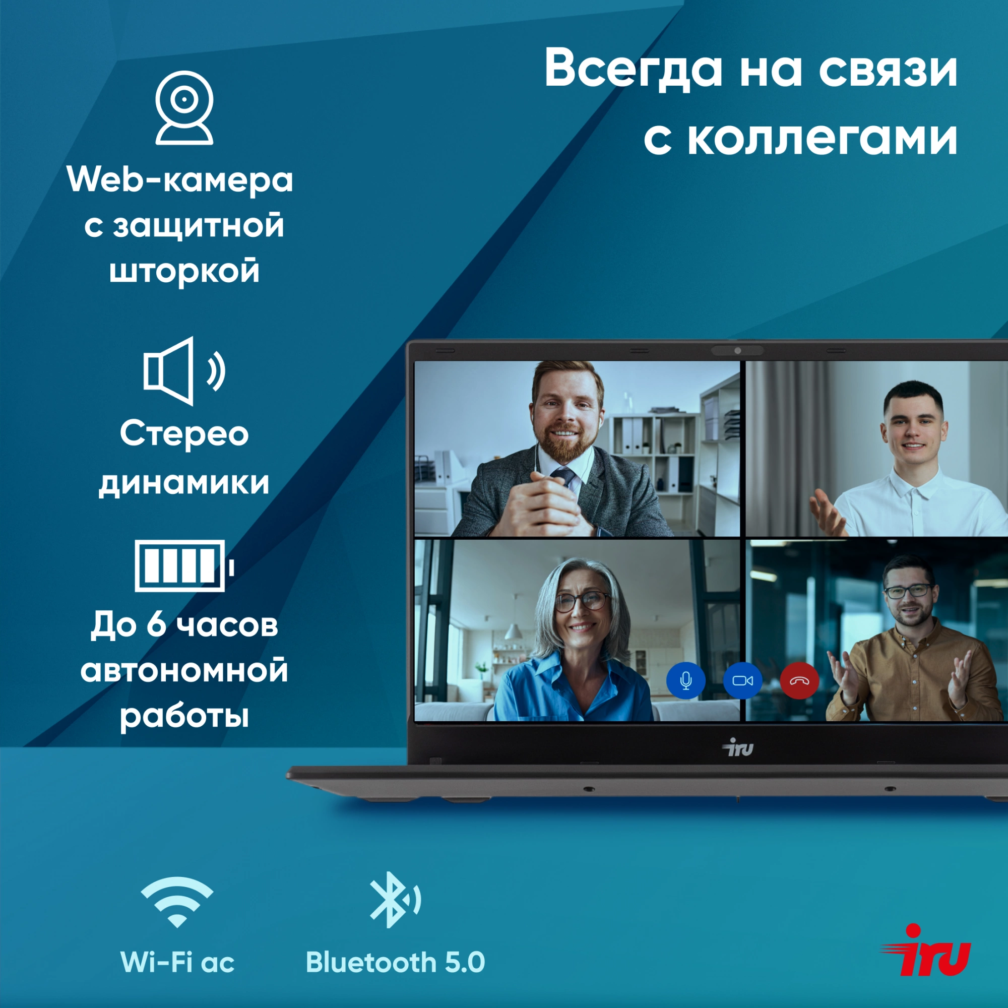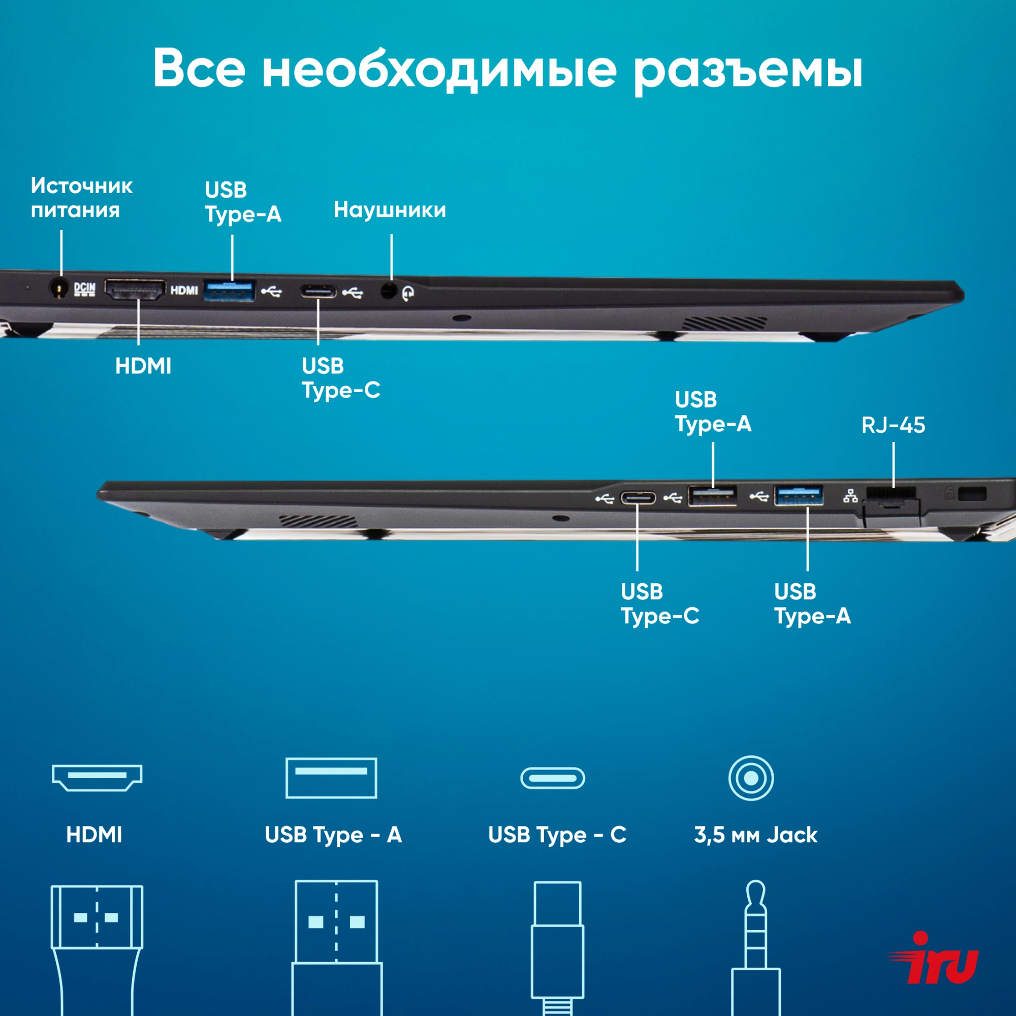 Ноутбук iRU Planio 15ING N100 8Gb SSD256Gb Intel UHD Graphics 15.6" IPS FHD (1920x1080) Windows 11 Pro Multi Language 64 black WiFi BT Cam 6000mAh [2059104]