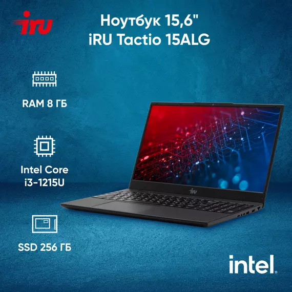 Ноутбук iRU Tactio 15ALG Core i3 1215U 8Gb SSD256Gb Intel UHD Graphics 15.6" IPS FHD (1920x1080) noOS black WiFi BT Cam 4500mAh [2023565]