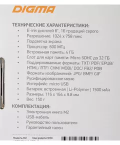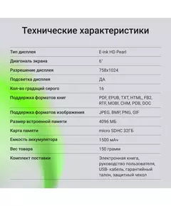 Встроенная память эл.книги32 Gb Встроенная подсветкаДа