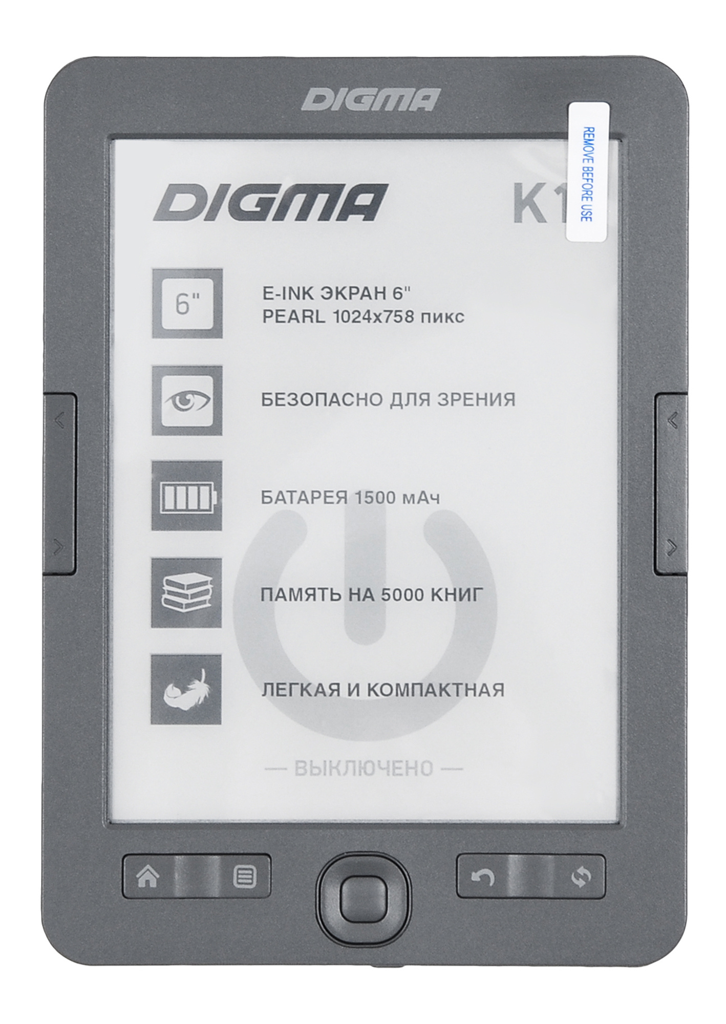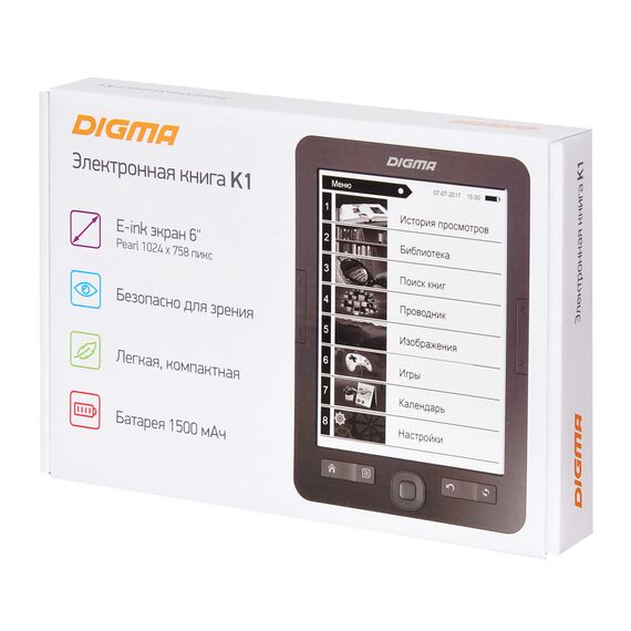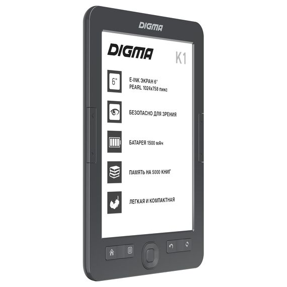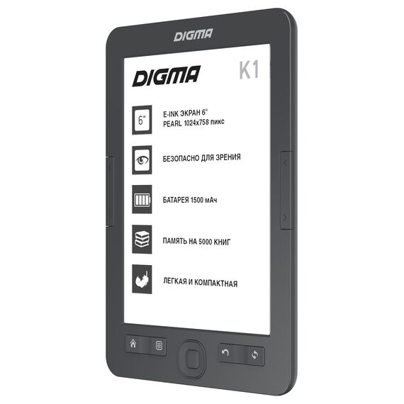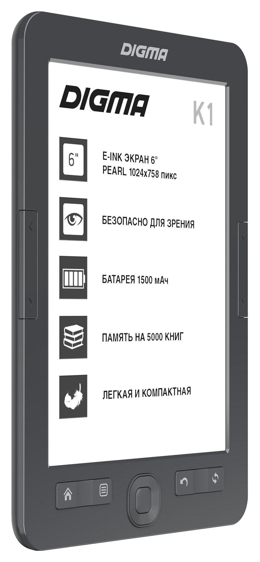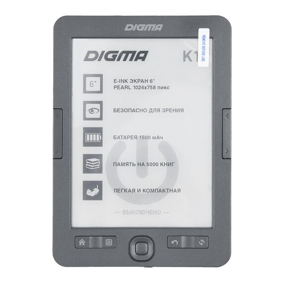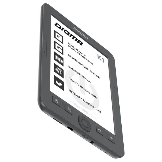 Электронная книга Digma K1G 6" E-ink HD Pearl 758x1024 600MHz 128Mb/4Gb/SD/microSDHC темно-серый