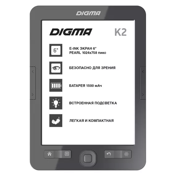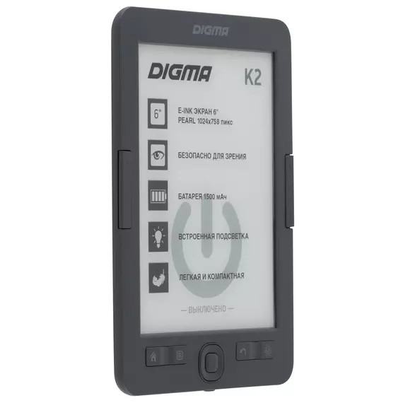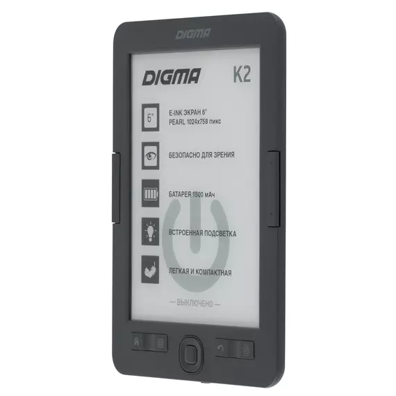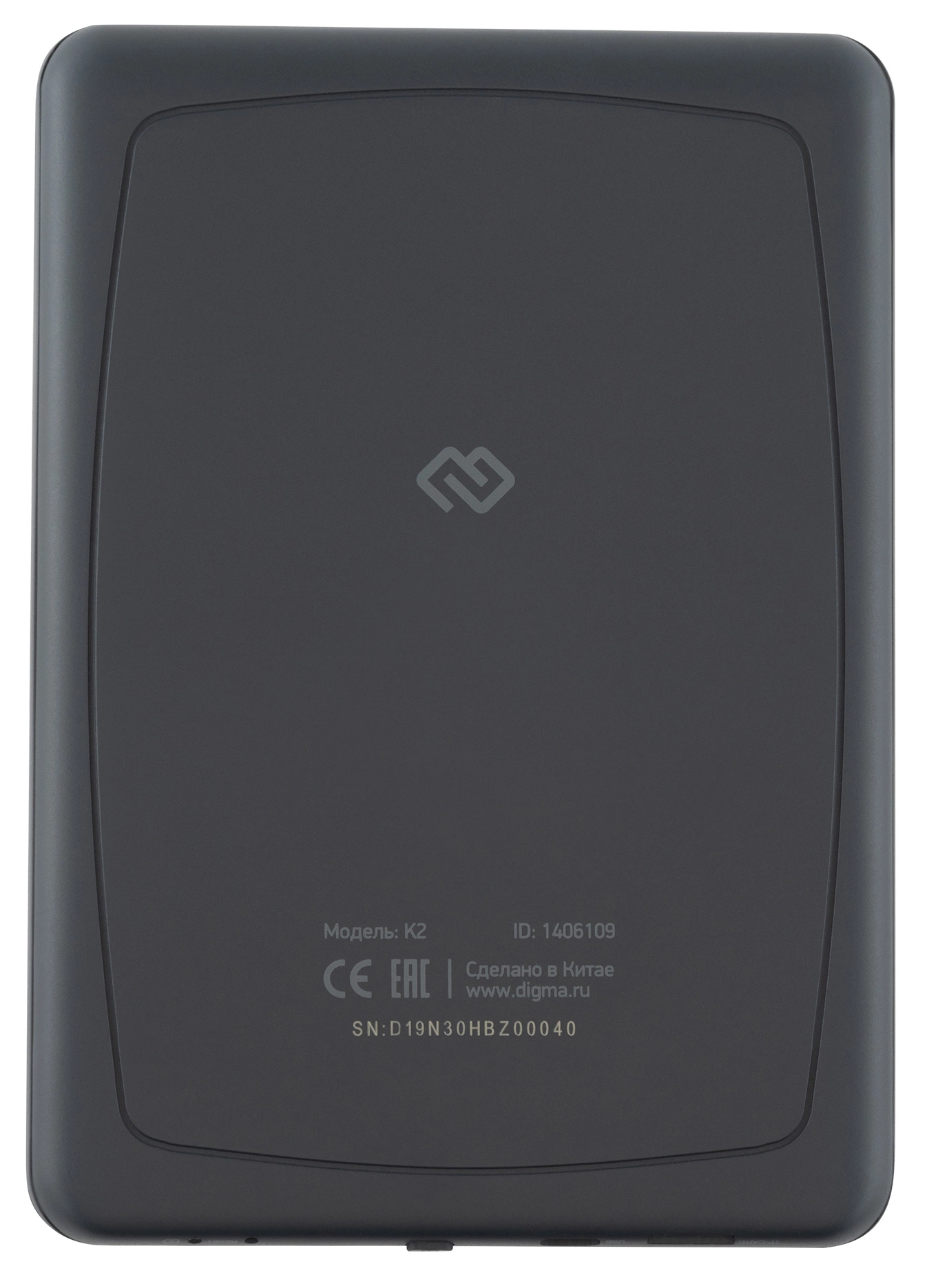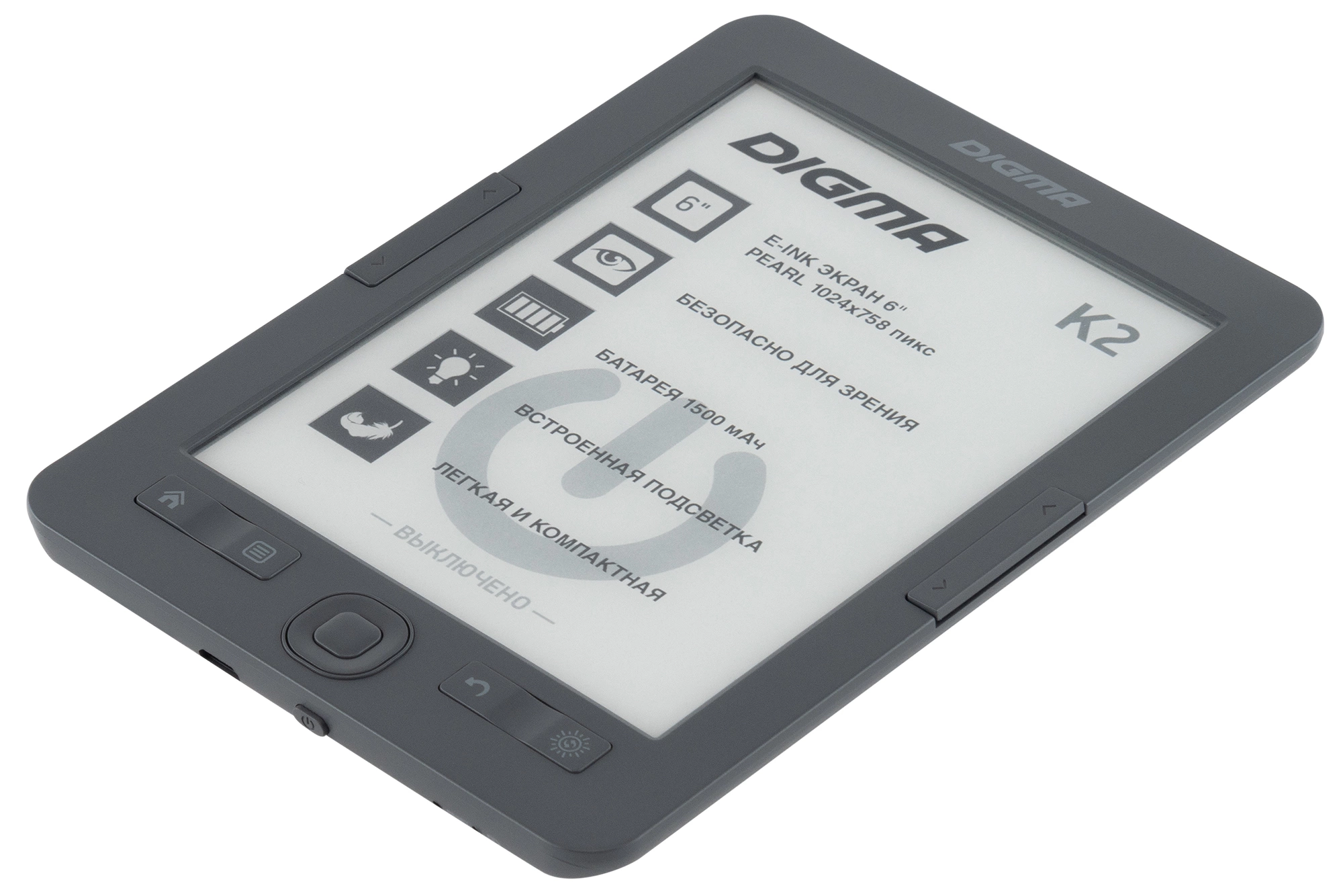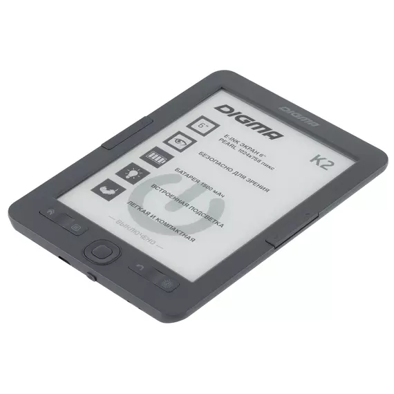 Электронная книга Digma K2G 6" E-ink HD Pearl 758x1024 600MHz/4Gb/microSDHC/подсветка дисплея темно-серый