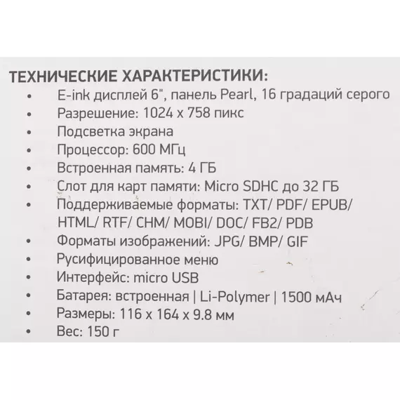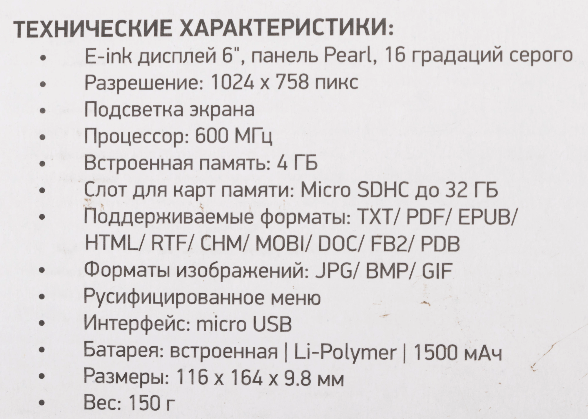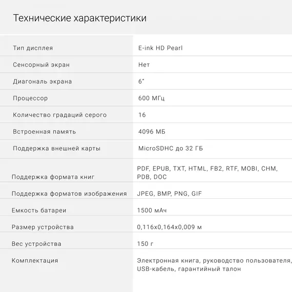 | Подержка форматов книг | PDF, EPUB, TXT, HTML, FB2, RTF, MOBI, CHM, PDB, DOC |