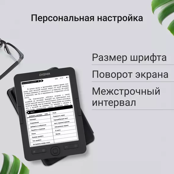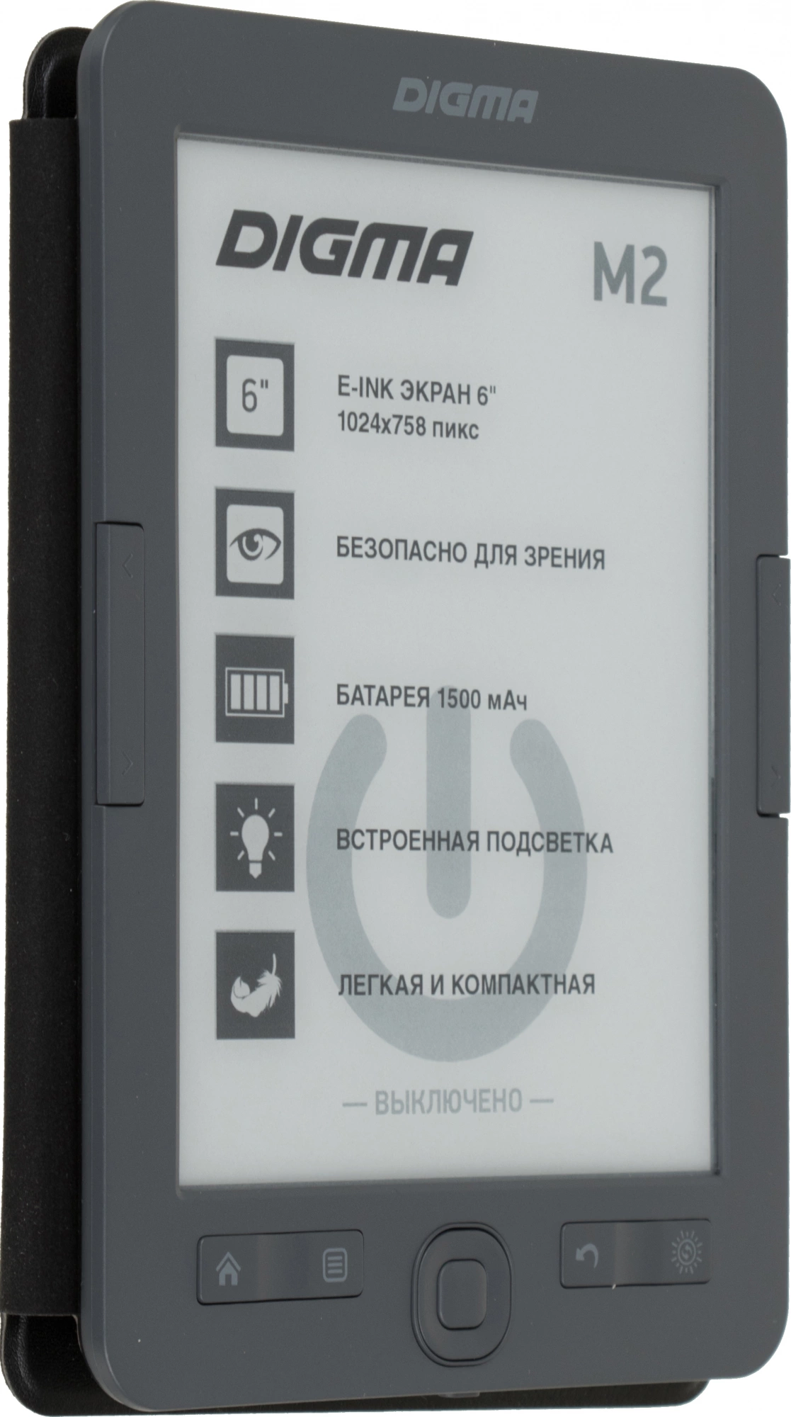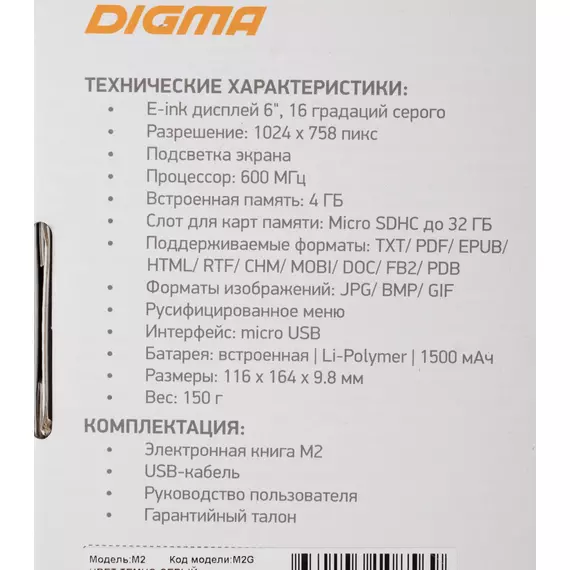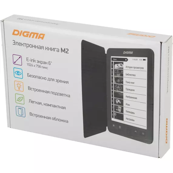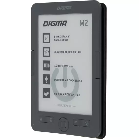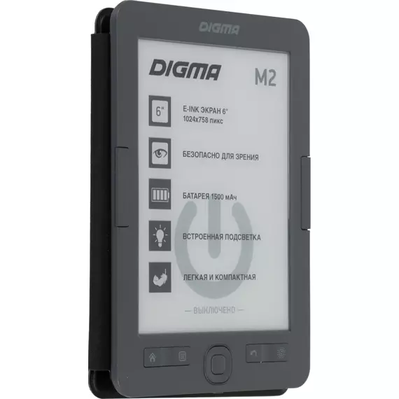 Электронная книга Digma M2 6" E-ink HD Pearl 758x1024 600MHz 128Mb/4Gb/SD/microSDHC/подсветка дисплея темно-серый