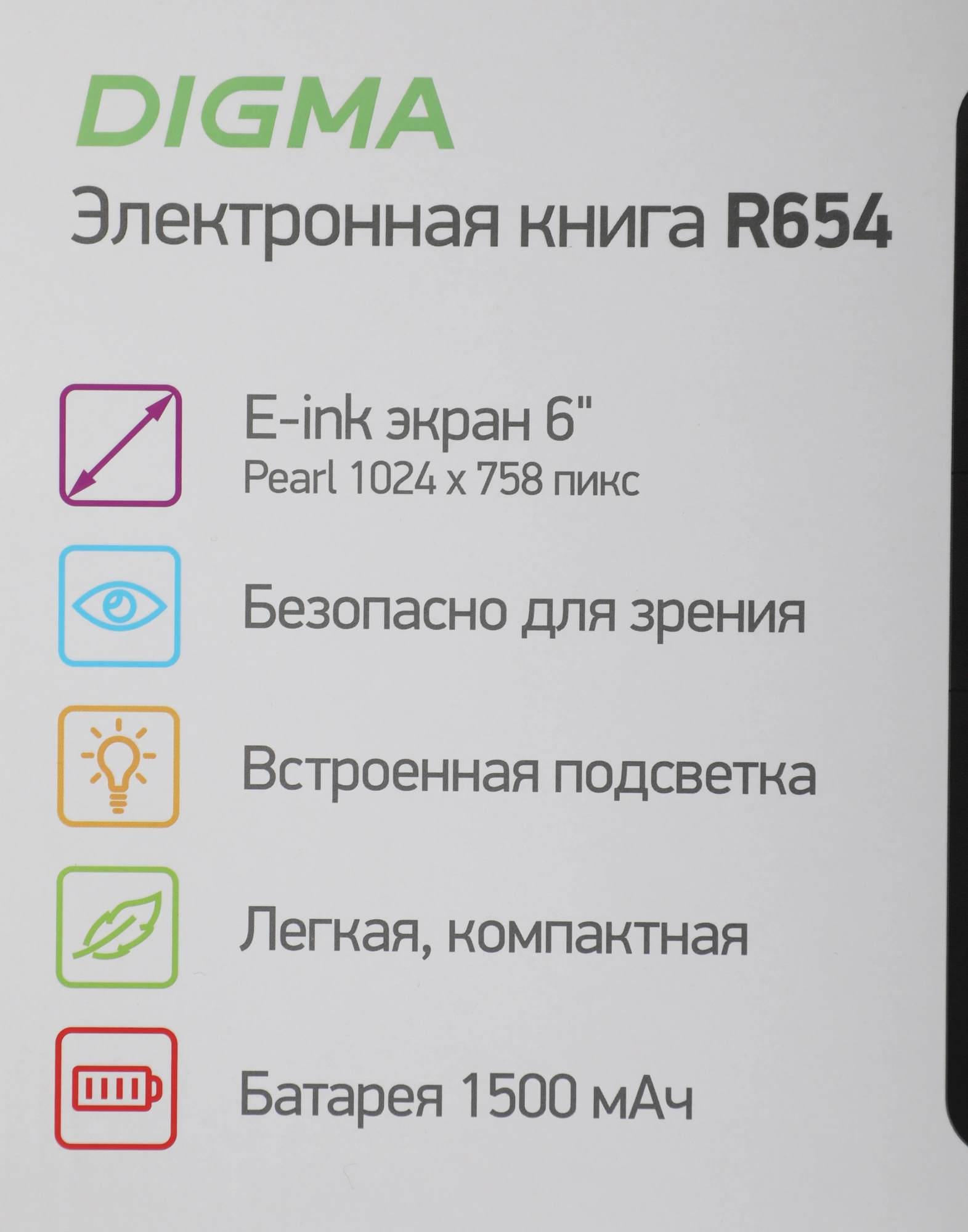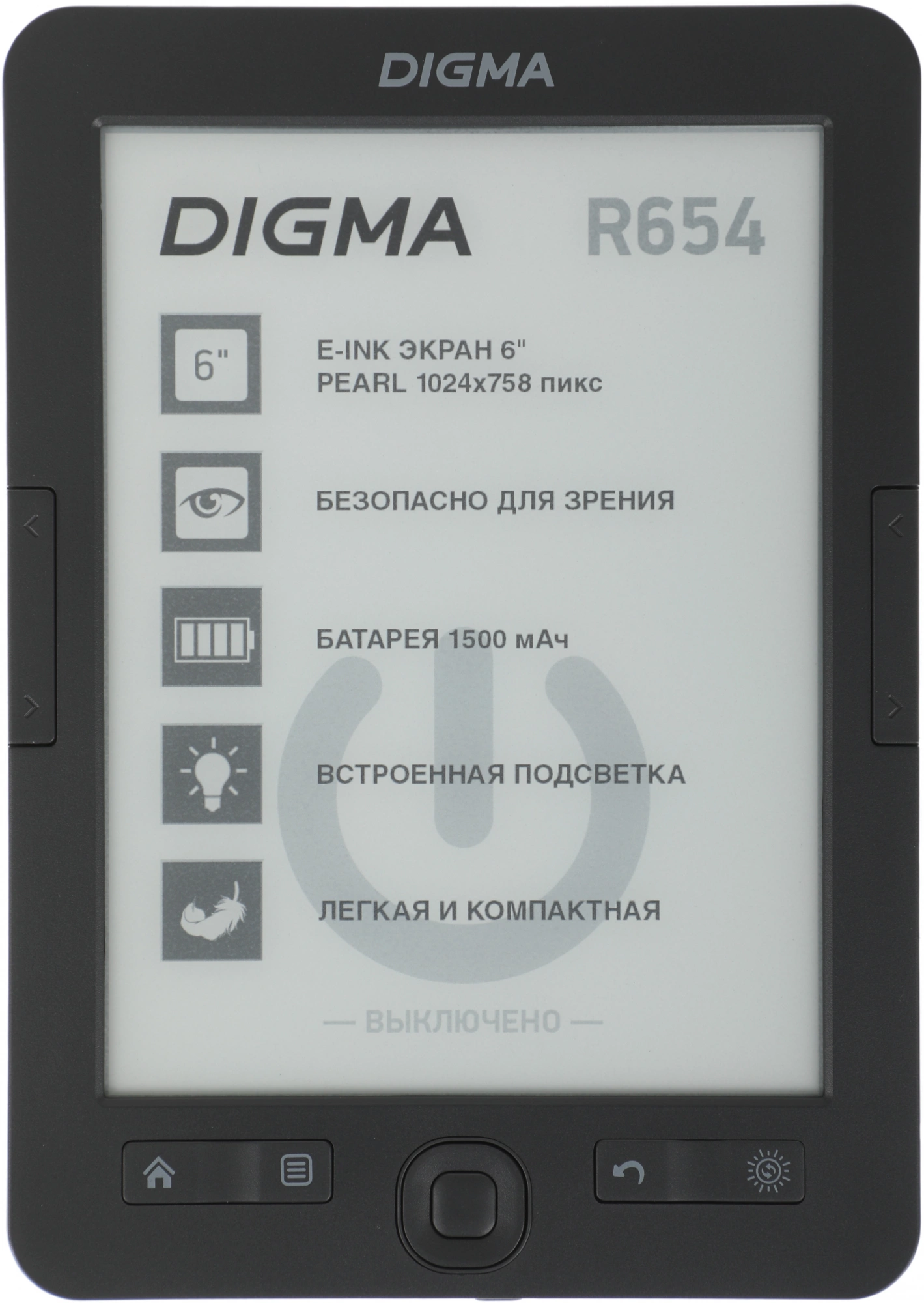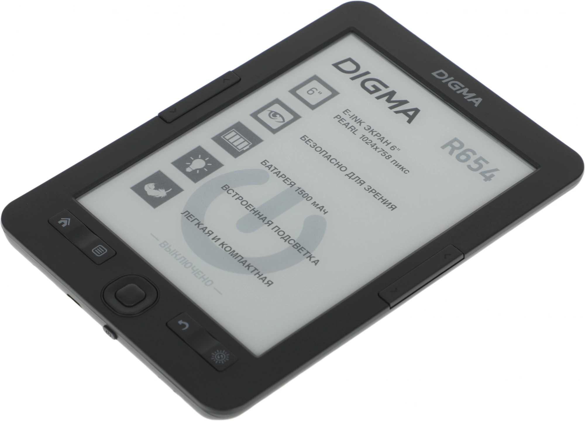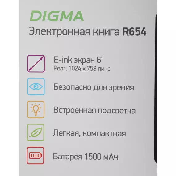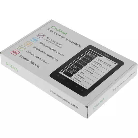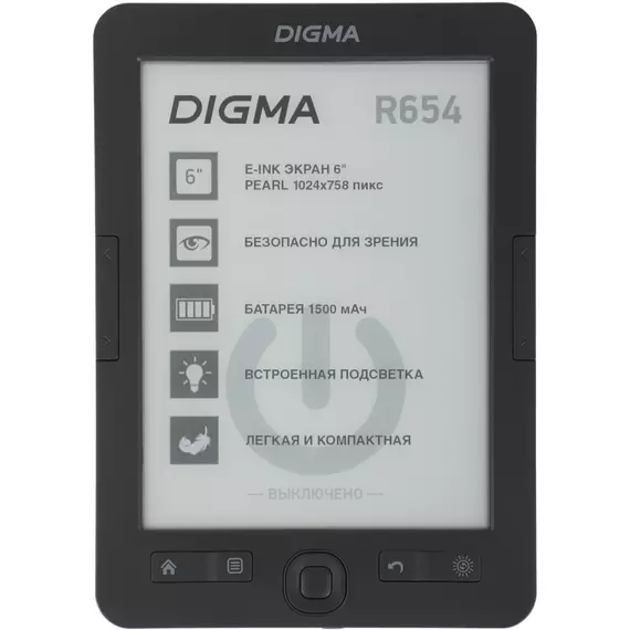 Электронная книга Digma R654 6" E-ink HD Pearl 1024x758 600MHz/4Gb/microSDHC/подсветка дисплея графит [R654GT]