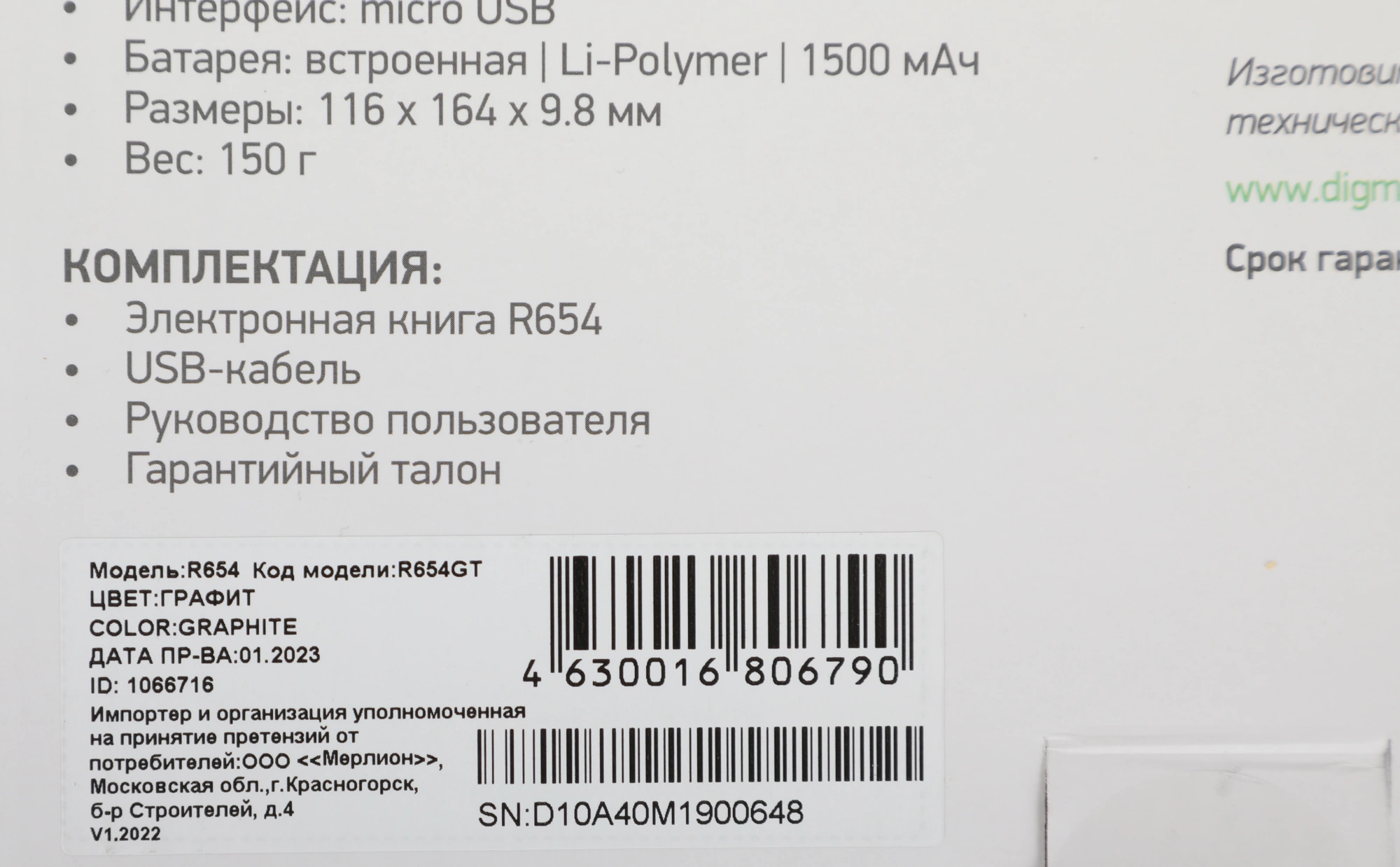 Наличие товара Digma R654 [R654GT]