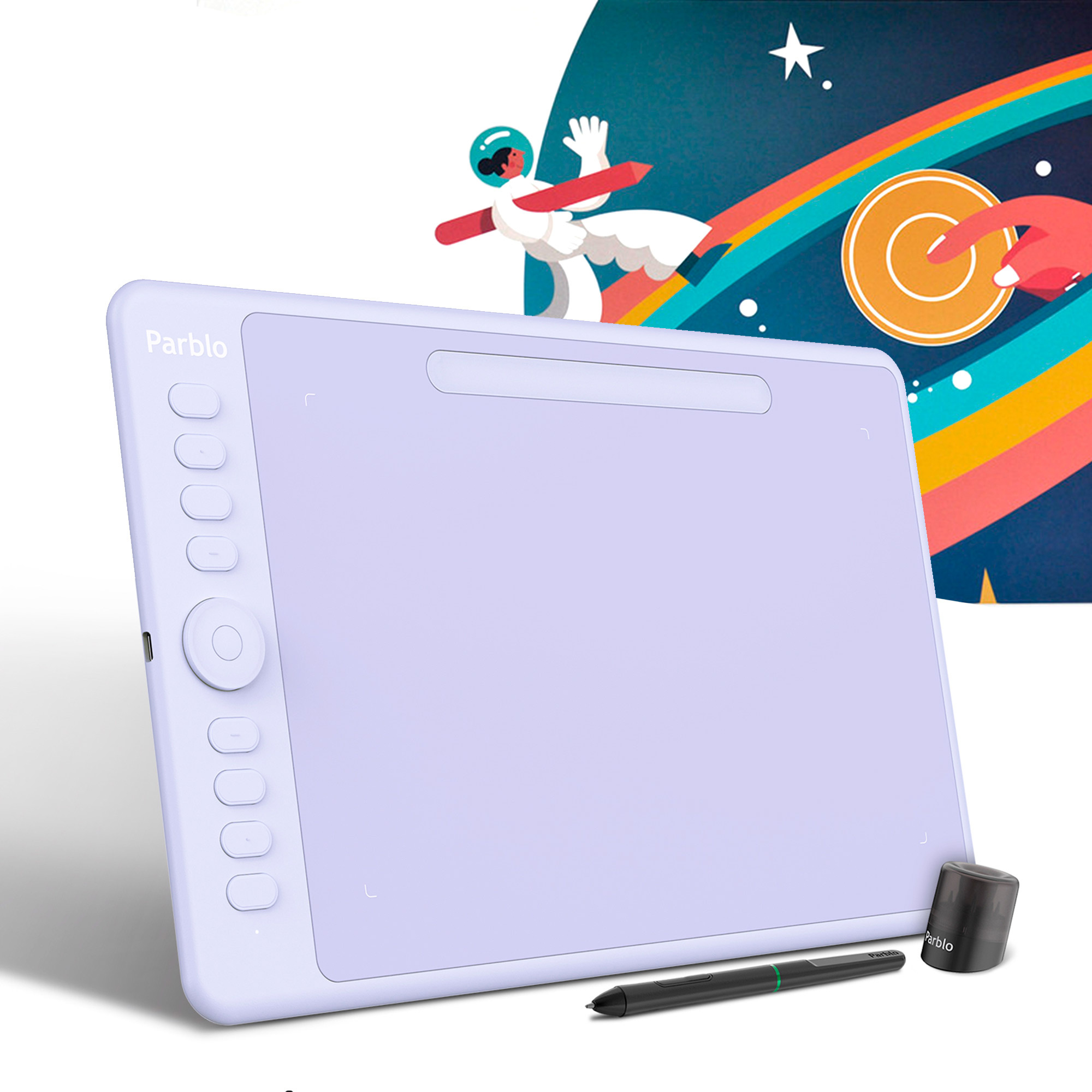 Планшеты серии Parblo Intangbo предназначены для всех художников. Они поддерживают функцию наклона пера 60 градусов. Разрешение рабочей области 5080 LPI, скорость отклика пера 266 PPS, 8192 уровней давления. Планшеты поддерживают операционные системы Windows, macOS, Android.