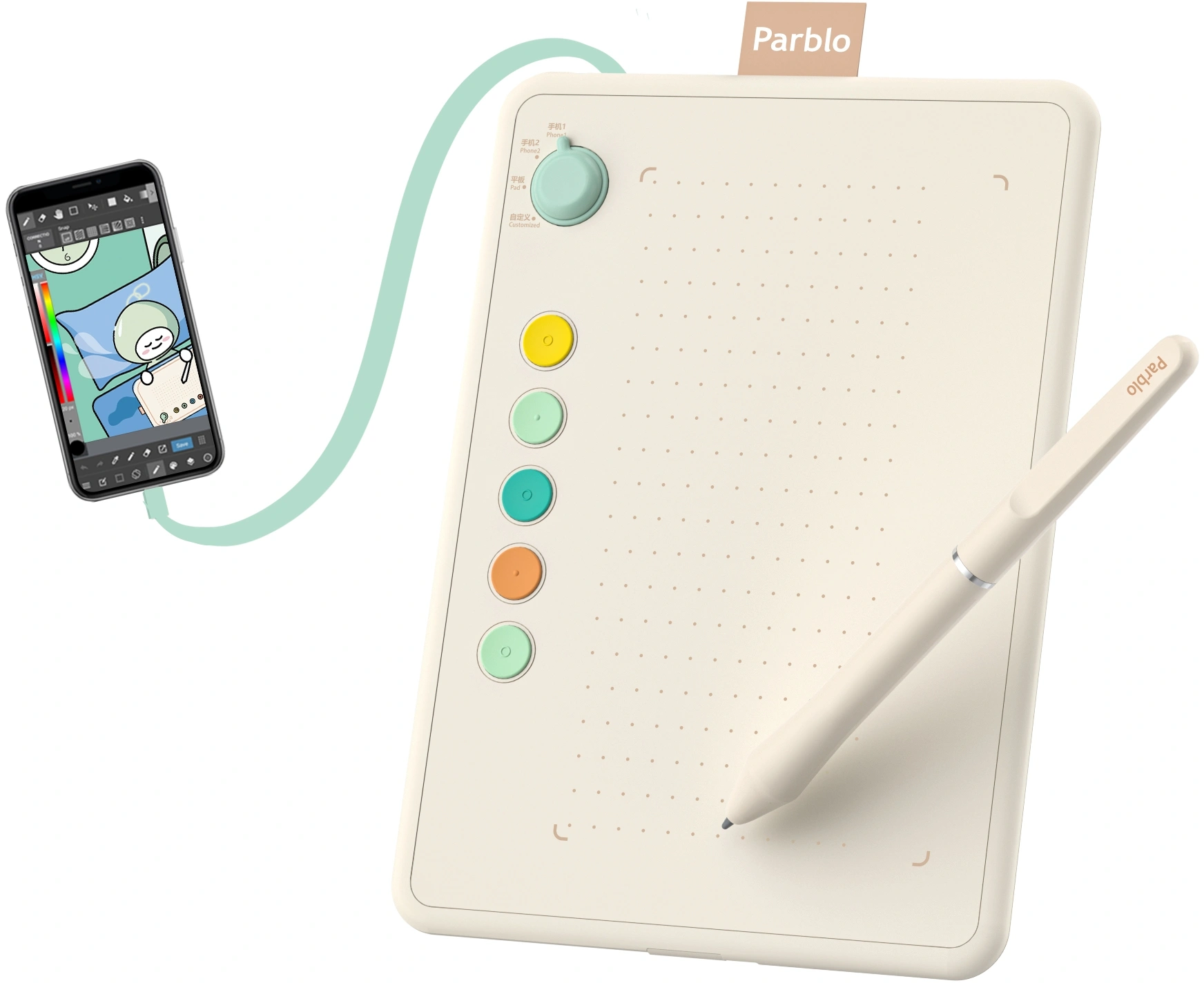 Графический планшет Parblo NINOS Q USB Type-C кремовый