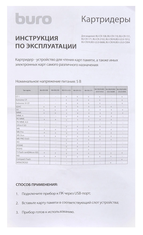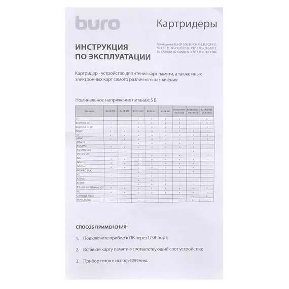 Устройство чтения карт памяти BURO BU-CR-151 USB2.0 черный