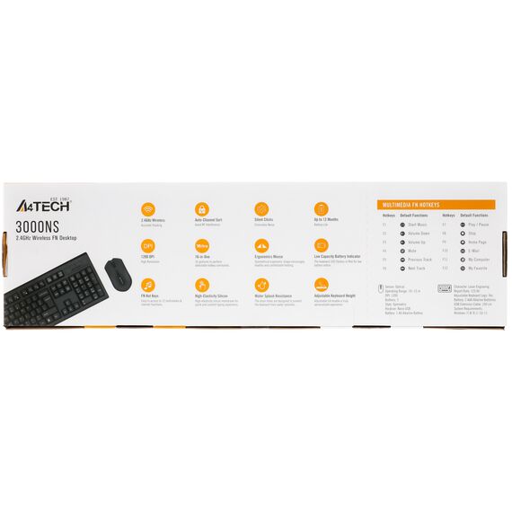 Клавиатура + мышь A4-Tech 3000NS клав:черный мышь:черный USB беспроводная Multimedia