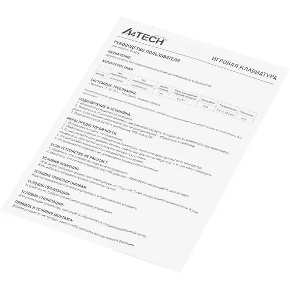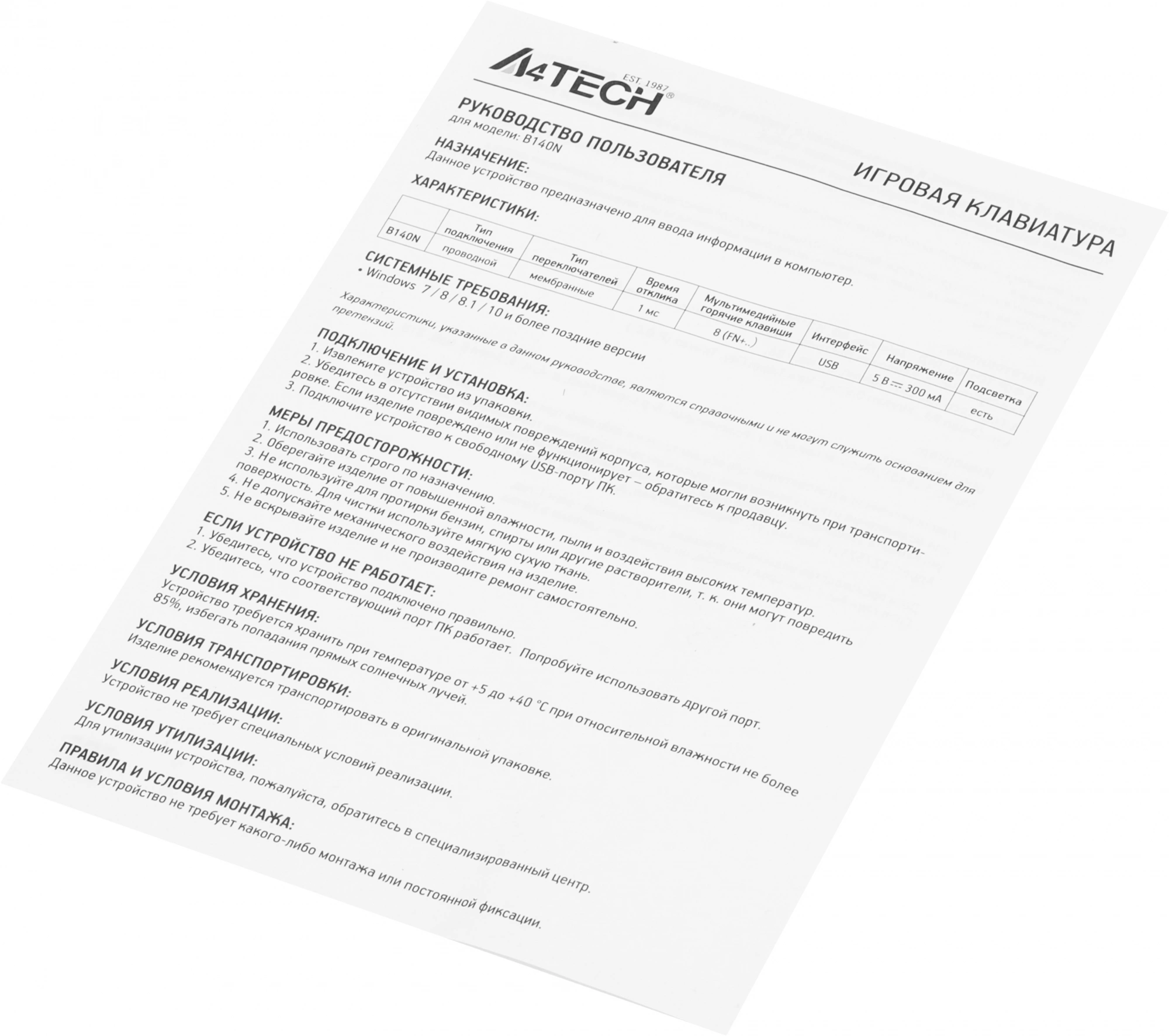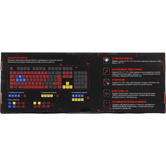 Клавиатура A4-Tech Bloody B140N черный USB Multimedia for gamer LED (подставка для запястий)
