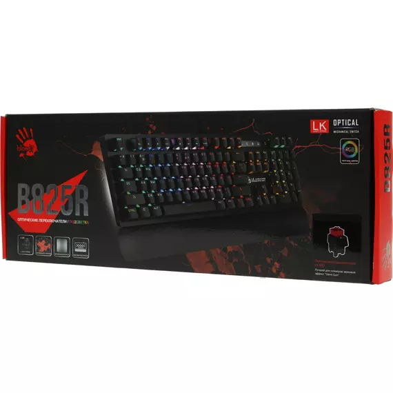 Клавиатура A4-Tech Bloody B825R RED SWITCHES механическая черный USB for gamer LED (подставка для запястий)